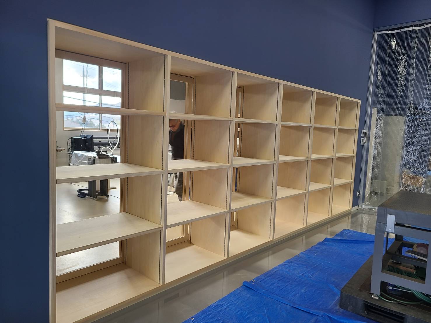 青色の壁に